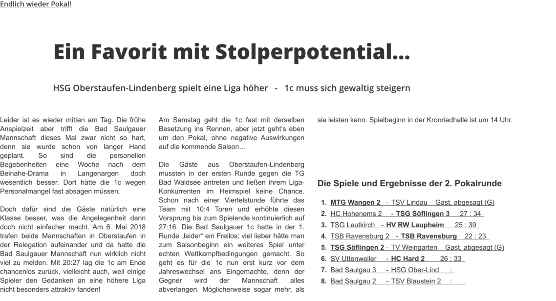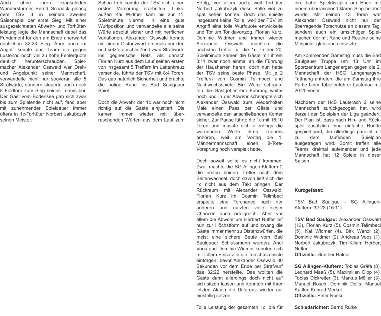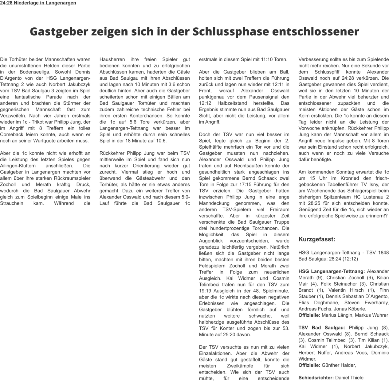 TSV 1848 Bad Saulgau - HC Lustenau: 23:25 (11:13)