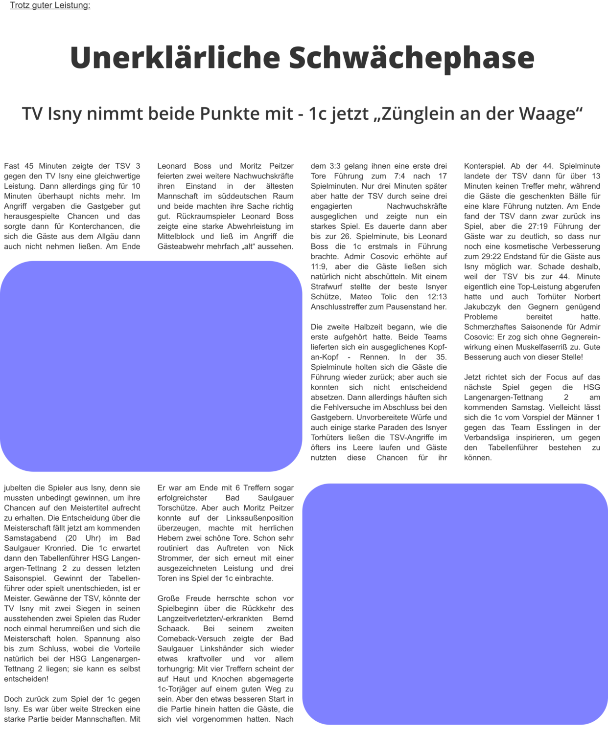 1c 13 Minuten ohne Treffer:22:29Derbe Niederlage nach Hänger in Halbzeit 2TV Isny wahrt seine Titelchancen