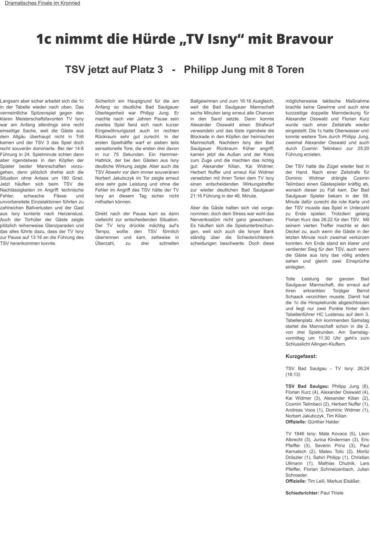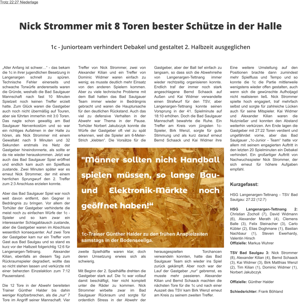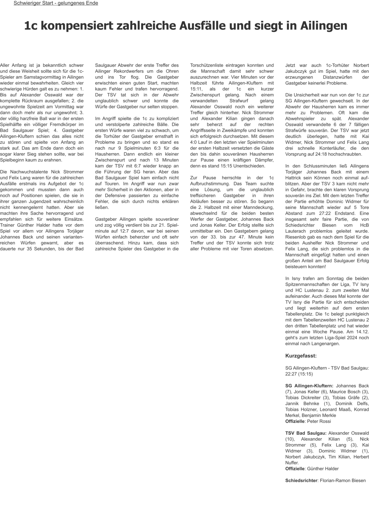 TSV 1848 Bad Saulgau - HC Lustenau: 23:25 (11:13)