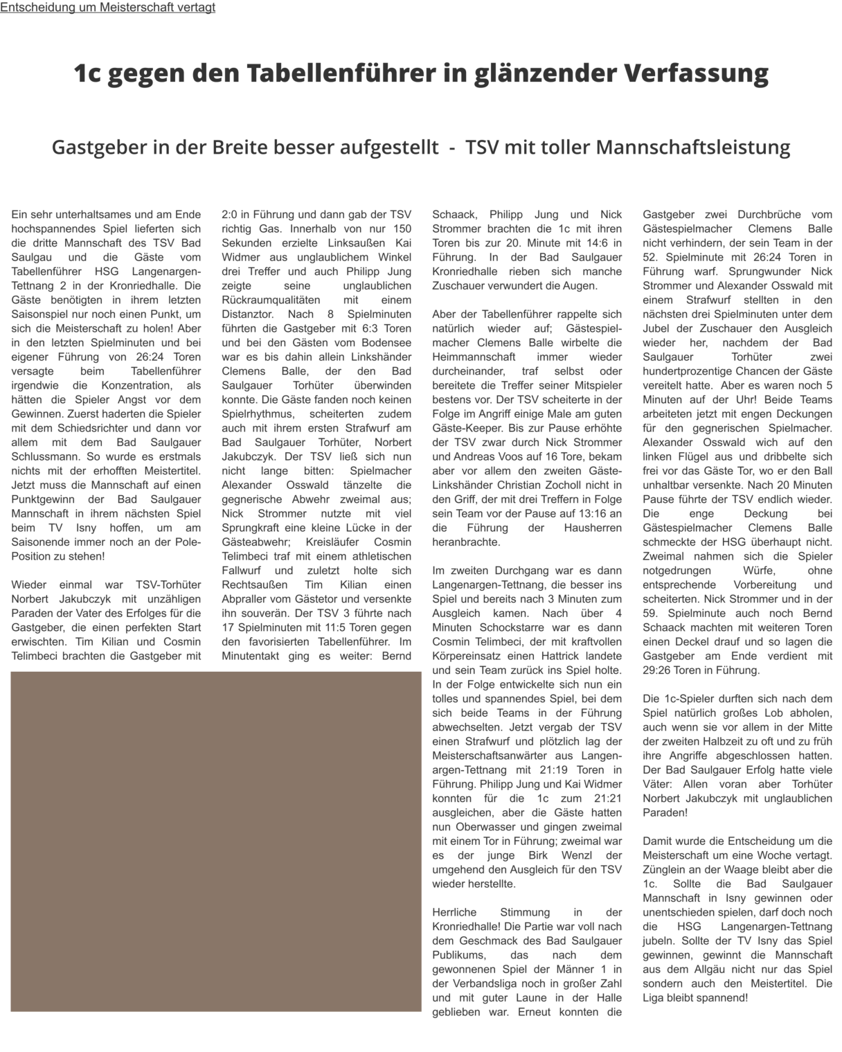 1c mit 19:26 Niederlage im AllgäuTV Isny holt sich die Meisterschaft…1c erst nach dem Spiel erfolgreich!
